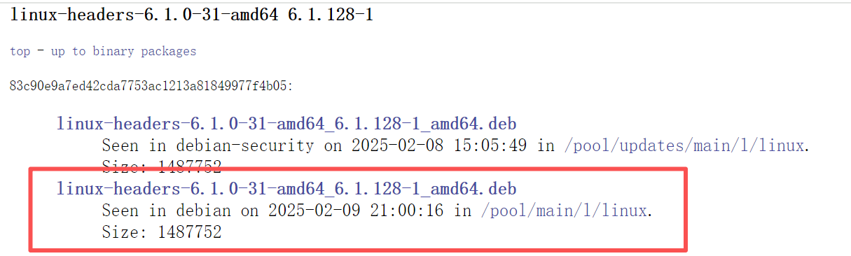 wget https://snapshot.debian.org/archive/debian/20250207T205318Z/pool/main/l/linux/linux-headers-6.1.0-31-common_6.1.128-1_all.deb