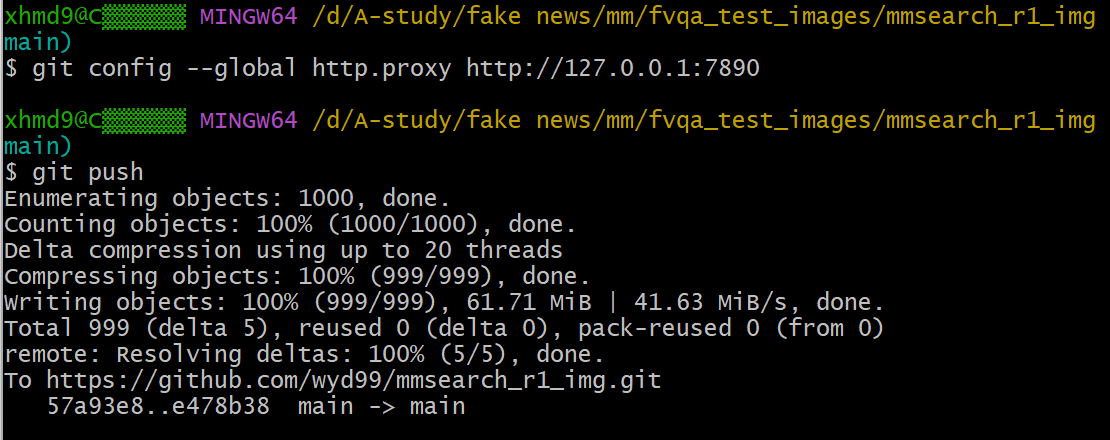 (这一步可能会花几十秒,因为文件较多,请耐心等待) (这里注意 比如你要继续上传剩余的文件 仍然可以执行这个命令 之前在仓库下上传过的不会重复上传)