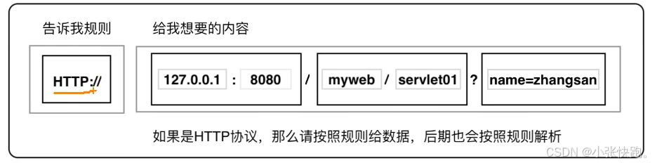 通信规则规定了客户端发送个服务器的内容格式,也规定了服务器发送给客户端的内容格式。客户端发送给服务器的格式叫"请求协议",服务器发送给客户端的格式叫"响应协议"。