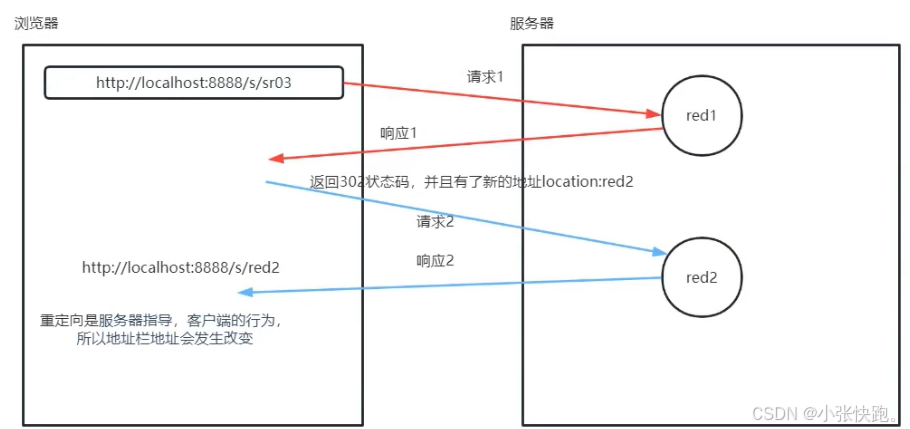 | 跳转范围不同 | 只能在服务器内部跳转 | 既能在服务器内部跳转,又能跳转服务器外部的资源 | |