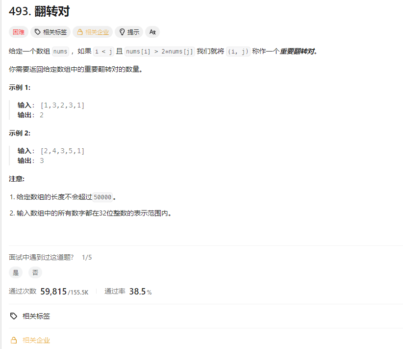 注意:上面的内容不能在合并数组的时候进行,在合并之前进行,因为在合并的时候进行会导致合并数组和找翻转对的过程冲突;所以我们要在合并数组之前进行,此时这两个数组都是有序的。