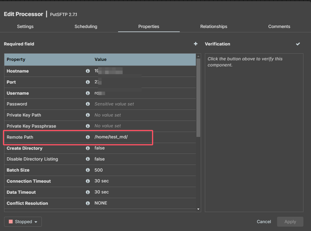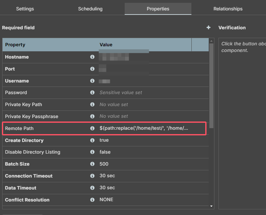 如果数据库路径包含文件夹,如:aa/aa.txt,源目录为:/home/test 目的目录为:/home/test_md,在配置putsftp(putftp)时,remote Path使用replace进行替换: