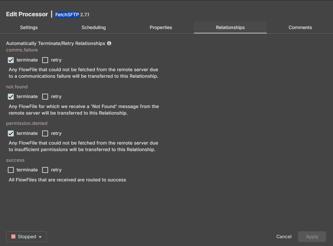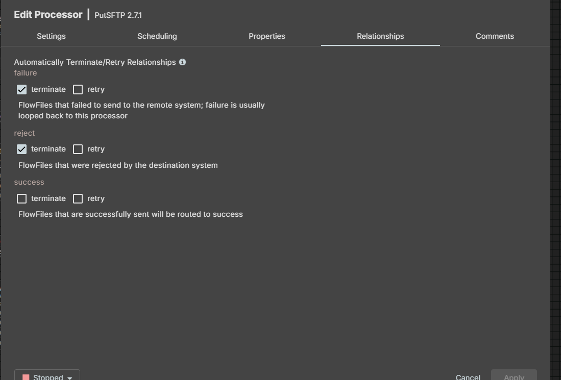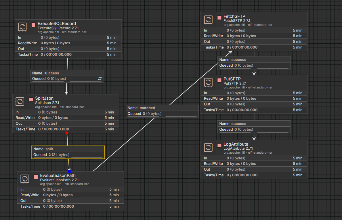 executeSQLRecord->SplitJson->EvaluateJsonPath->FetchSFTP(FetchFTP)->PutSFTP(PutFTP)