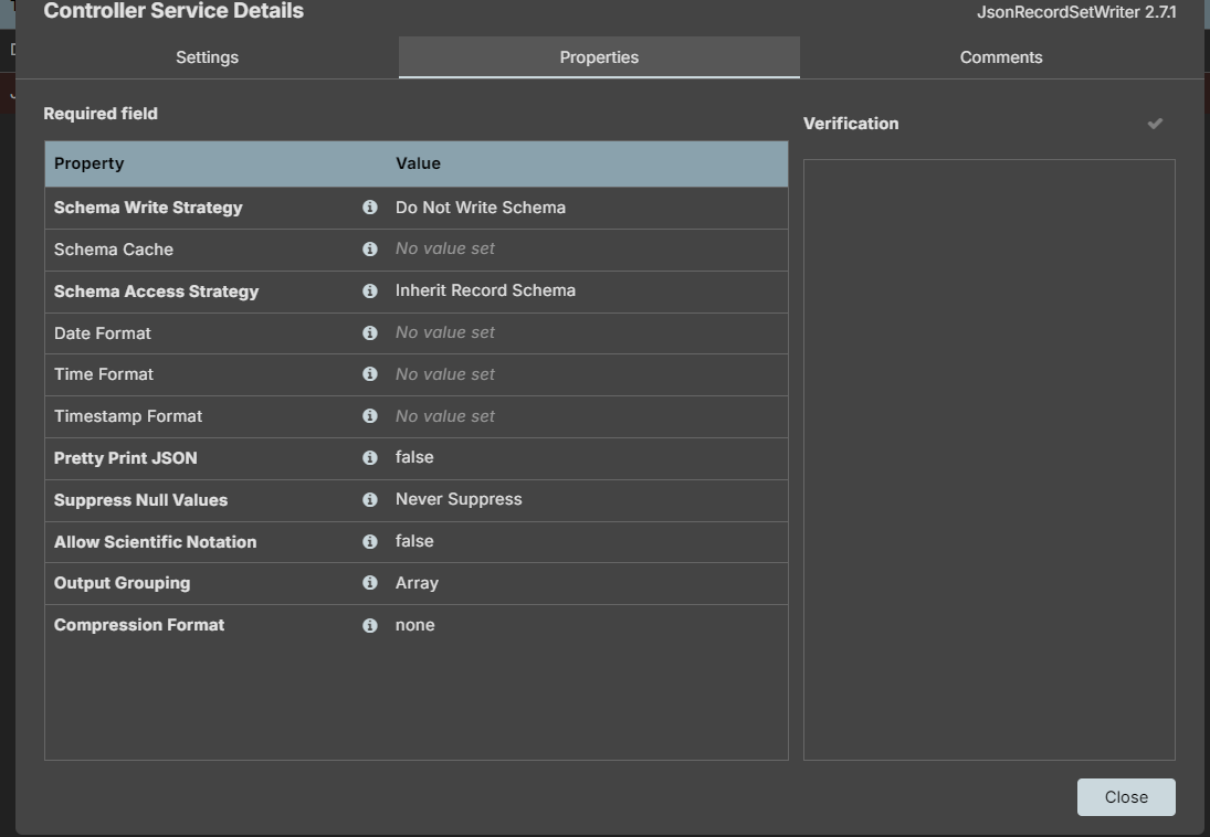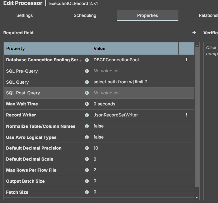 新建数据库查询返回使用的格式服务JsonRecordSetWriter,在executeSQLRecord的Record Writer选择使用JsonRecordSetWriter:
