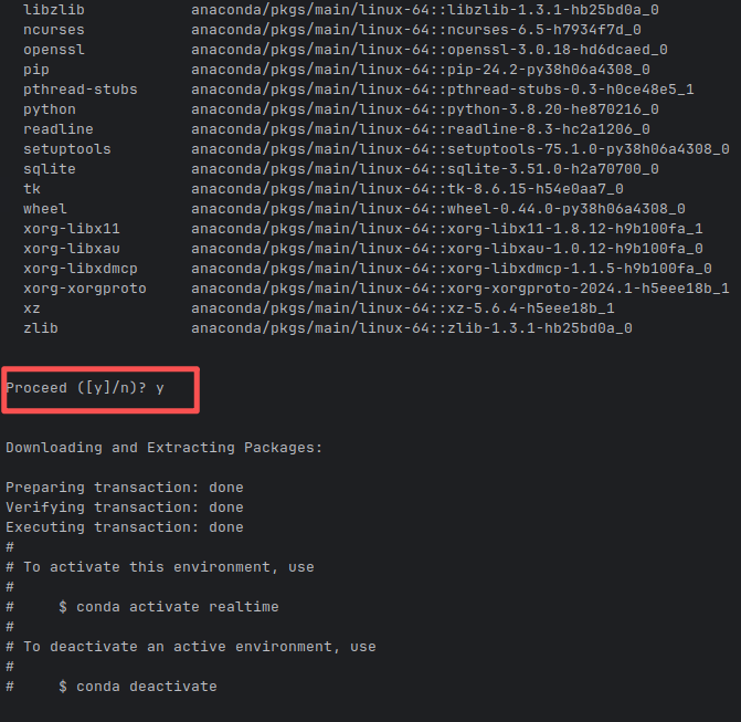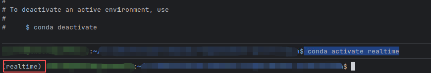 激活后,命令行前缀会变 (realtime)代表进入该环境。