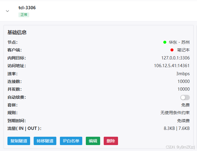 先确认内网服务是否正常,我这里以本机(127.0.0.1:3306)为例,先检查本地服务是否正常,能否正常访问到内网服务。