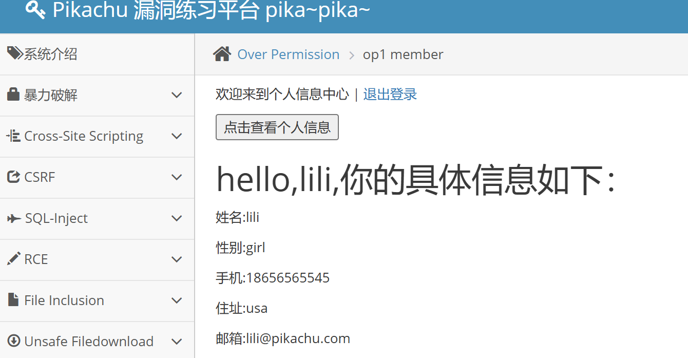 http://pikachu:8000/vul/overpermission/op1/op1_mem.php