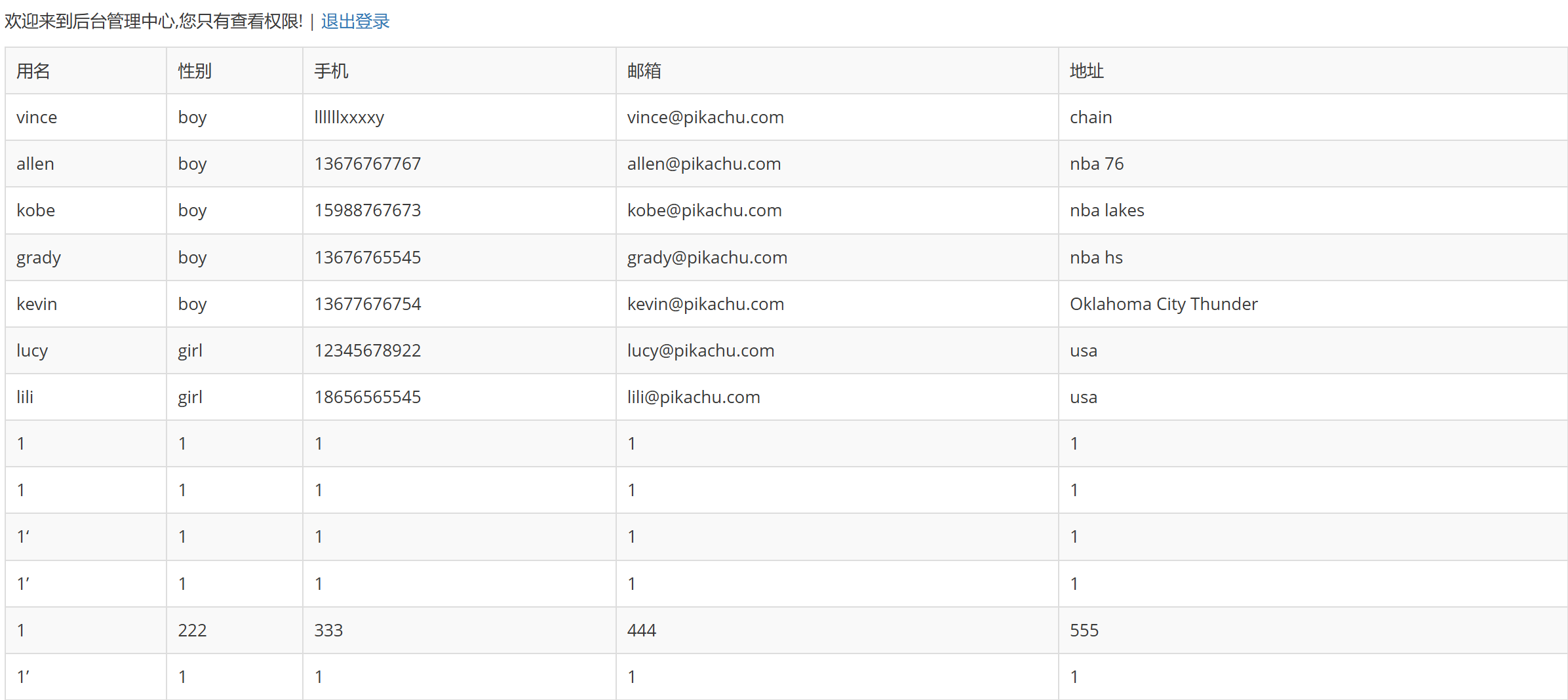 然后我想用pikachu用户来添加数据从而实现越权的实现