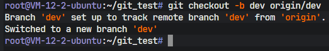 首先,需要创建一个本地的 dev 分支,并切换过去。同时,为了方便后续的 push 和 pull 操作,最好让这个本地分支直接与远程的 origin/dev 分支建立"跟踪"(tracking)关系。
