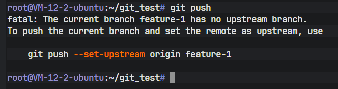 Git 报错 fatal: The current branch feature-1 has no upstream branch.。这是因为 feature-1 是一个纯本地分支,远程仓库并不知道它的存在,因此 Git 不知道该将它推送到哪里。