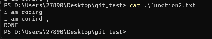 接着,开发者2创建 function2.txt 文件,添加内容,并进行 add 和 commit。