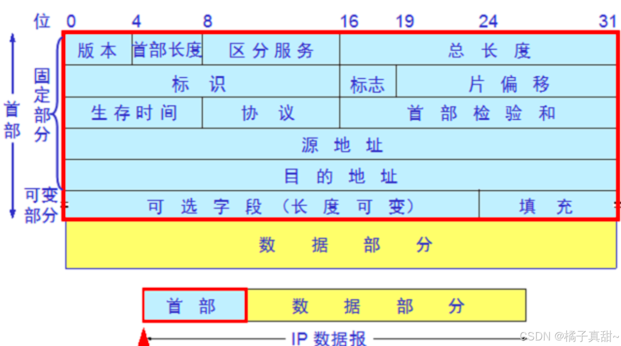 16位检验和:用于检测IP报文有没有损坏(数据错误或者字节数多了/少了),如果发现错误就会丢失这个IP报文