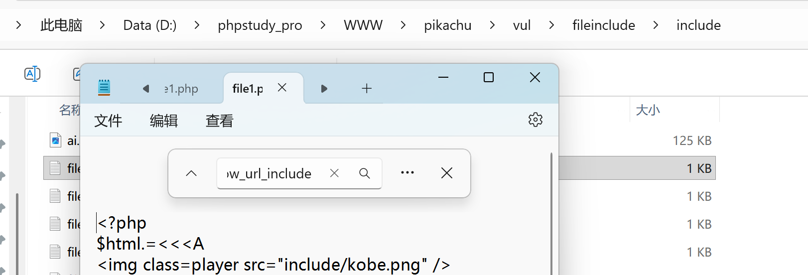 其实这个文件的完整路径是:"D:\phpstudy_pro\WWW\pikachu\vul\fileinclude\include\file1.php"