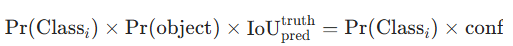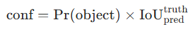 conf:置信度,反映该框包含目标的概率 + 框的定位精度,公式为: