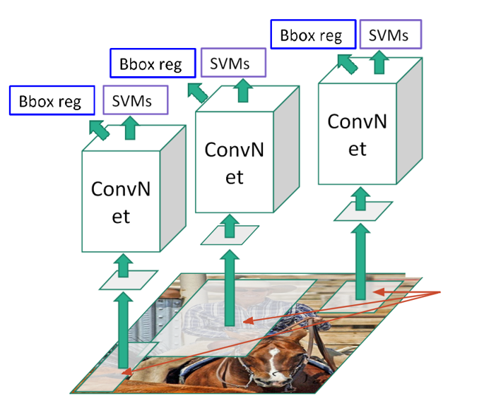 - 预训练 CNN → 2. 用 CNN 提取所有候选区域的特征并保存 → 3. 分别训练 SVM 分类器和边界框回归器。