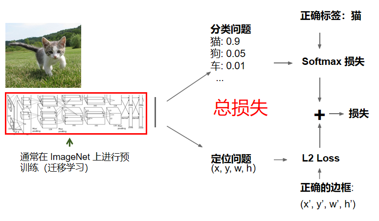 - 分类损失 Lcls:衡量预测标签与真实标签的差异,常用 交叉熵损失。