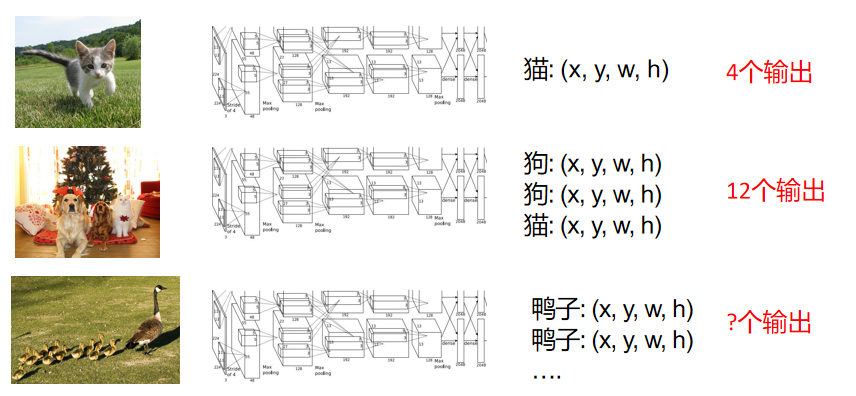 但是,传统的方法有一个问题。如果遇到多目标的时候该怎么办?每一张图的目标数量不一定,就造成了网络训练与识别的困难。