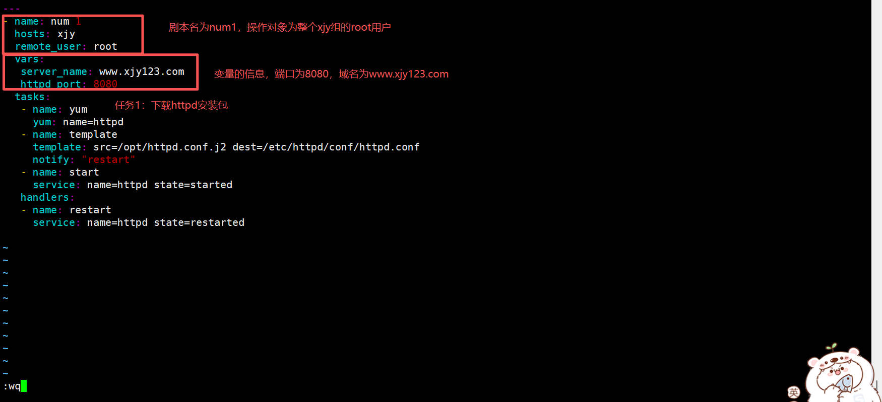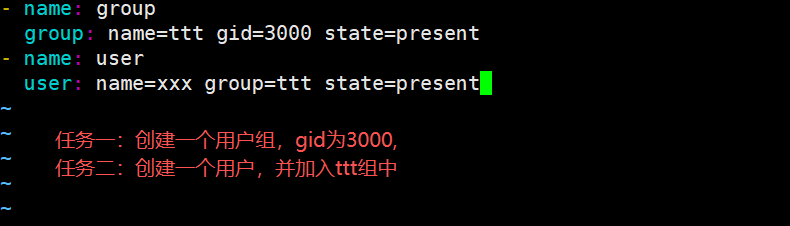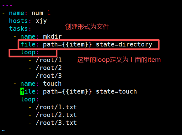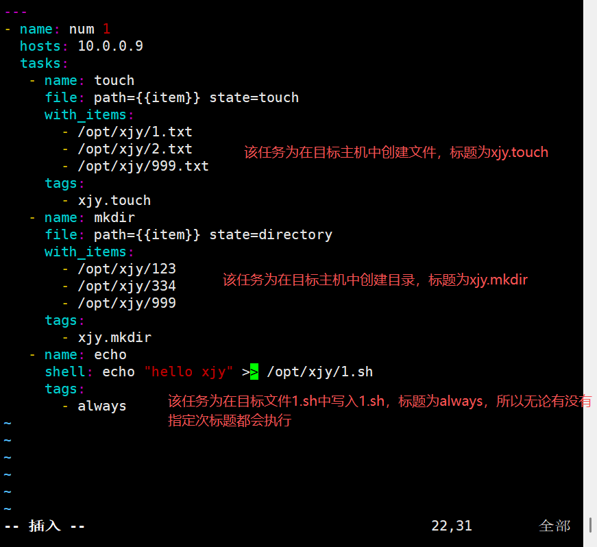 touch /etc/ansible/剧本文件 ------------------------创建剧本文件(这里用xjy.yaml)