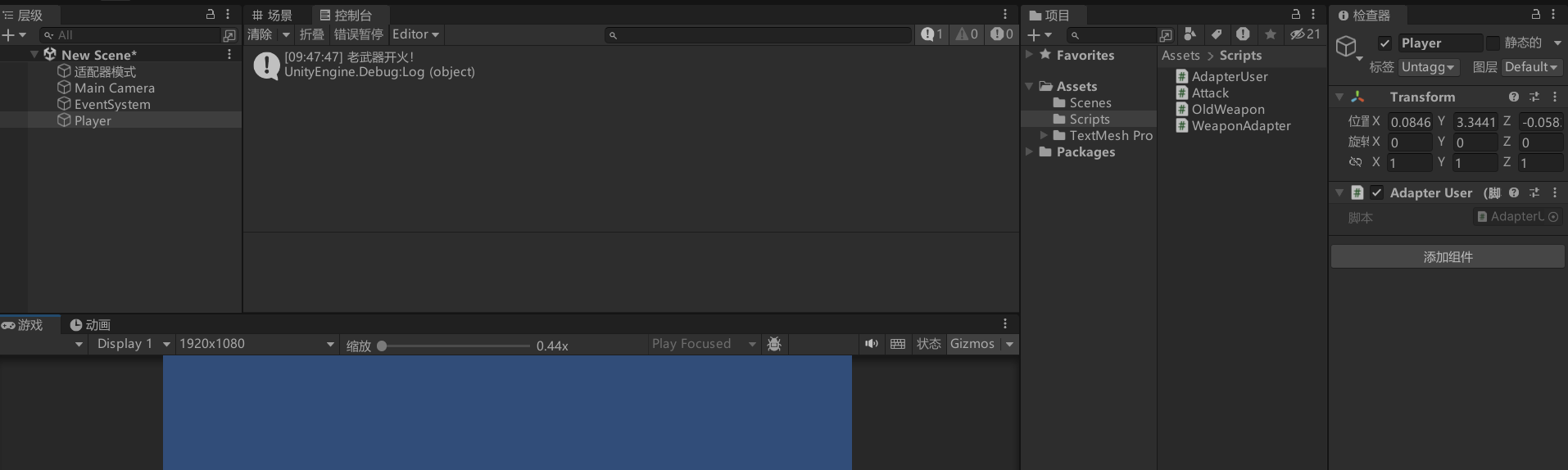 适配器中持有旧版攻击方法的引用,当玩家像调用新的攻击方法那样调用攻击方法的时候会自动帮玩家执行旧版的攻击方法。
