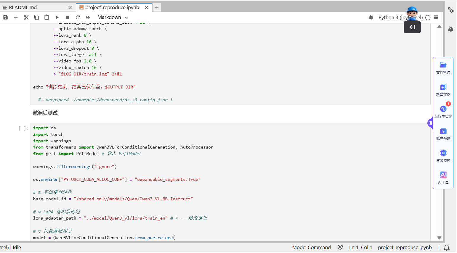 在项目复现中的 "快速体验demo" 中进行快速体验,参考步骤进行操作,即可立即观察到基线模型和微调后模型的区别。