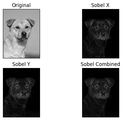 titles = ['Original', 'Sobel X', 'Sobel Y', 'Sobel Combined']