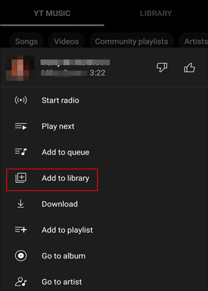 点击菜单 (或三点图标 )> "添加到库" >按照屏幕上的说明操作,即可将歌曲或专辑添加到您的 YouTube 音乐库。您还可以删除观看记录或启用 YouTube Music 的位置权限以接收推荐内容。