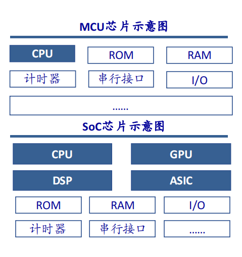 用于了解SOC芯片和MCU芯片的区别,内部结构上的区别。