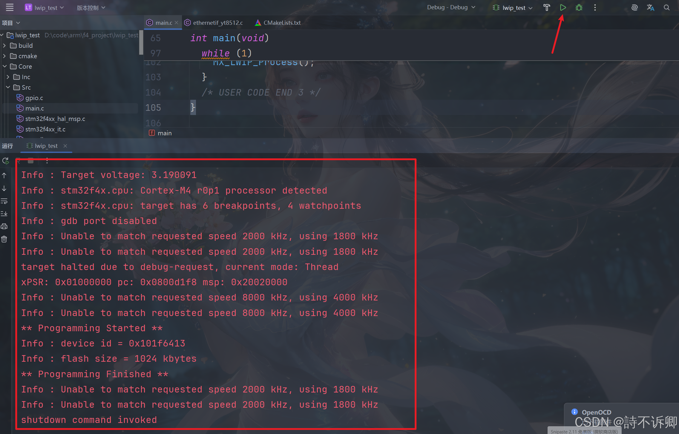 - 本次提供关键的操作步骤,开发工具选用clion+arm-gcc+openocd