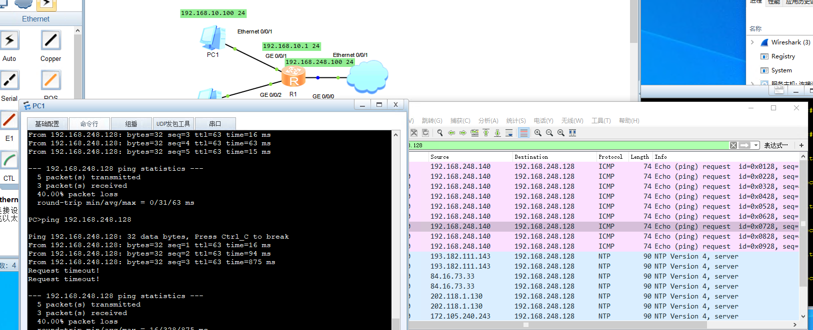 尝试 ping 外部的 192.168.248.128,发现ping的通了,通过抓包可以看到源地址是192.168.248.140,目标地址是192.168.248.128。