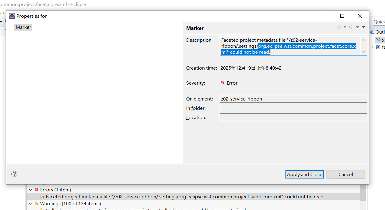 org.eclipse.wst.common.project.facet.core.xml could not be read.