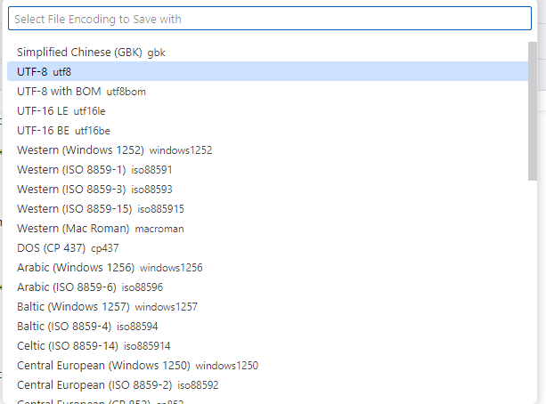 而文件保存时支持的编码方式也与上文中介绍的相同,开发者可根据自身项目需求进行指定,点击对应的编码方式后,当前文件将以该编码进行保存。