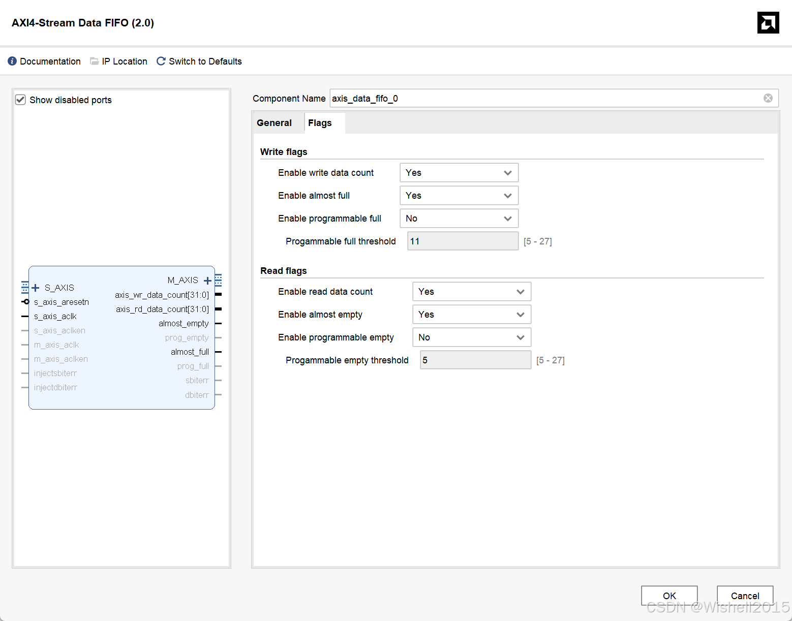 Enable read data count (启用读取数据计数): Yes , 勾选后,IP 核会增加一个输出端口 axis_rd_data_count。 实时输出 FIFO 中当前有多少个数据等待被读取。