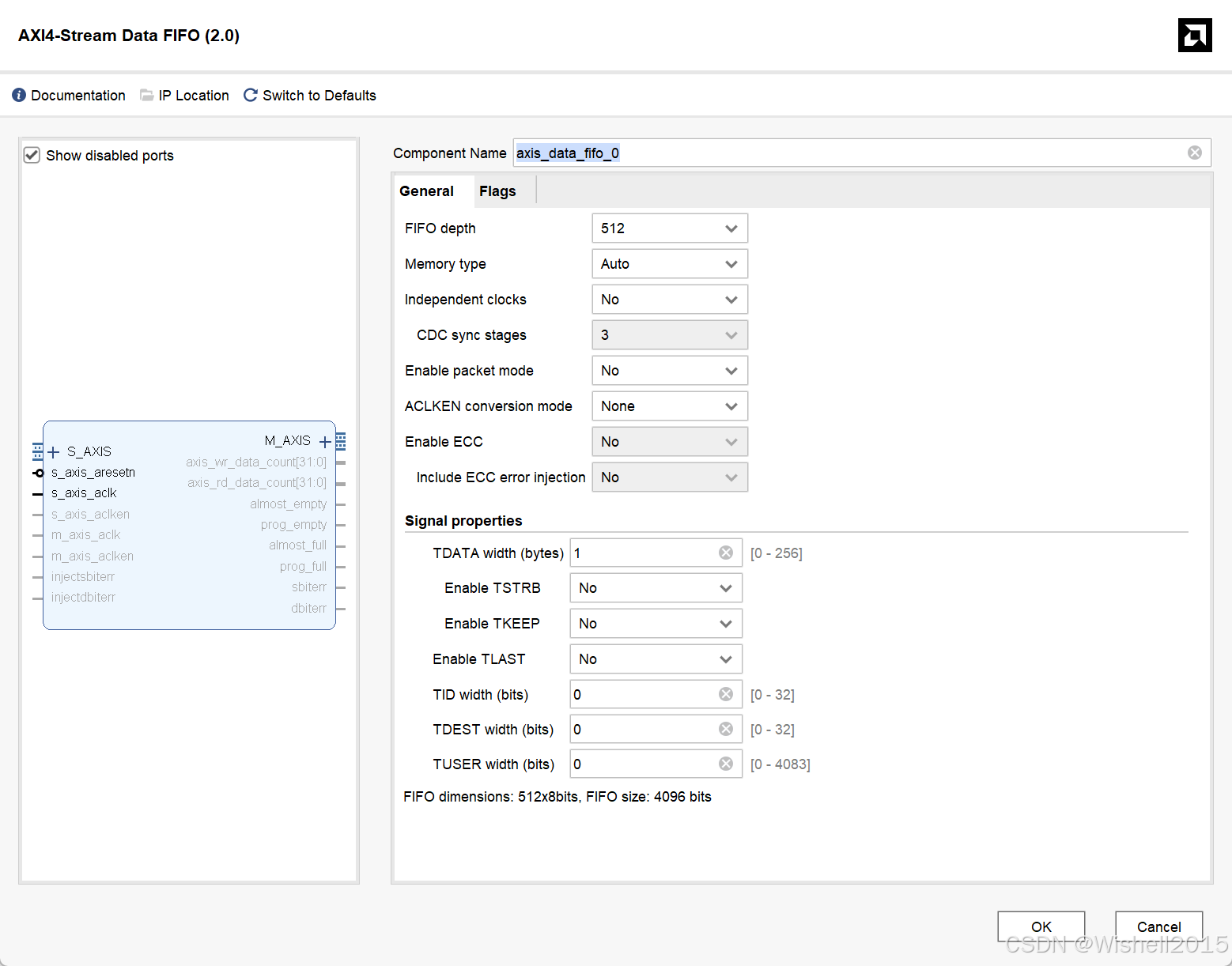 - 设为 0 表示不使用这些信号,它们不会出现在 IP 核的端口上,也不会被 FIFO 缓存。