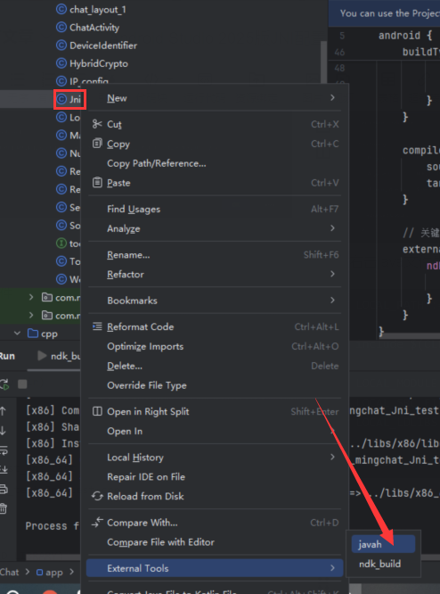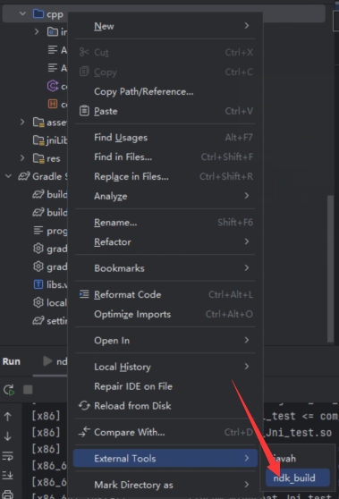 然后右击cpp文件夹 ,就能用ndk_build编译