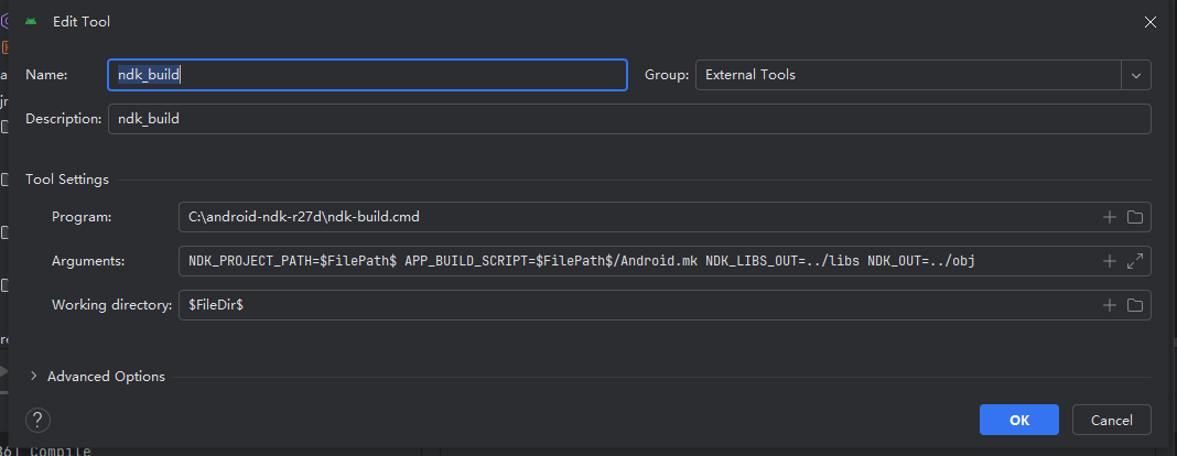 arguments "NDK_APPLICATION_MK=src/main/cpp/Application.mk"