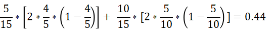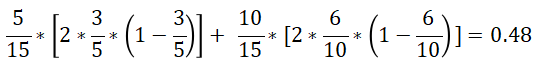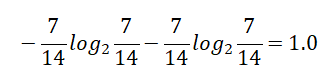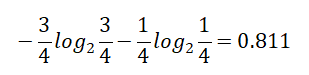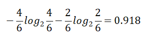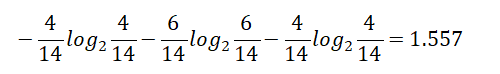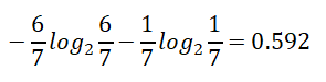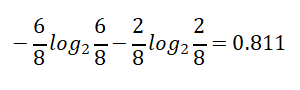 熵值计算:8/14*0.811 + 6/14*1 = 0.892
