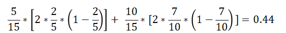 5/14*0.971+4/14*0+5/14*0.971=0.693