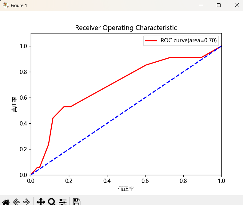 fpr, tpr, thresholds = roc_curve(y_test, a)#用来计算不同阈值下的fpr和tpr,