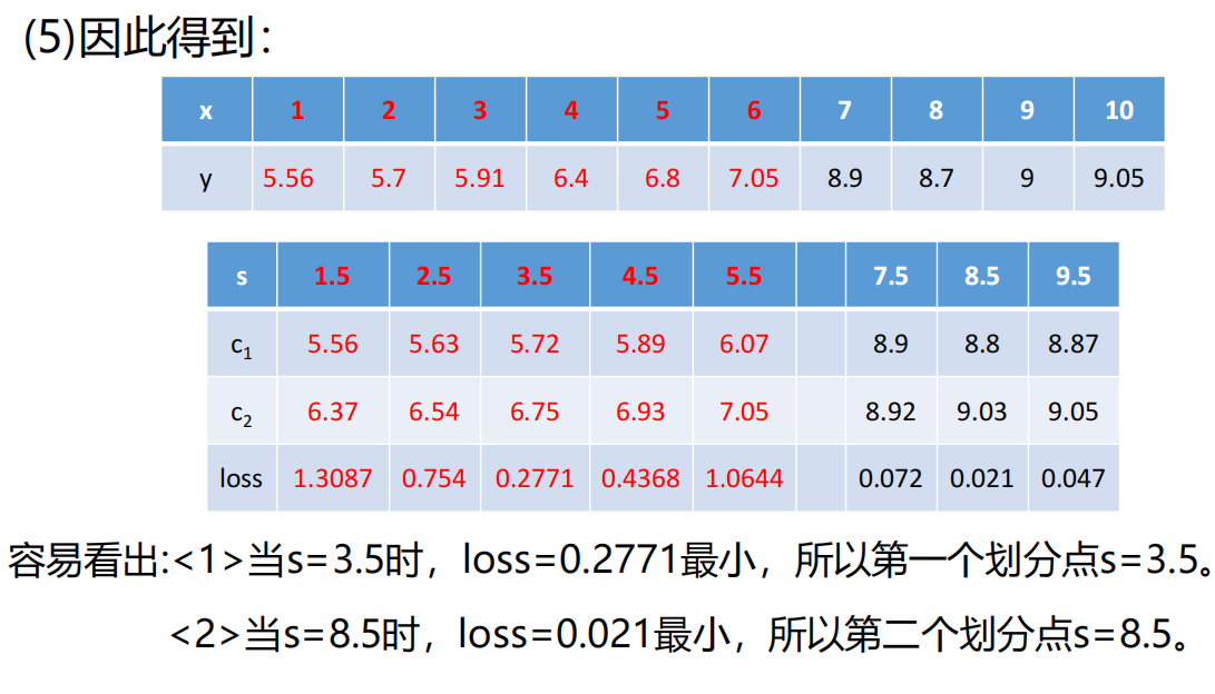 4.min_samples_split :默认值是2. 分裂一个内部节点需要的最小样本数,