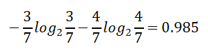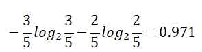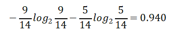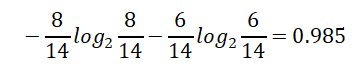 result = -9/14*math.log(9/14, 2) - 5/14*math.log(5/14, 2)