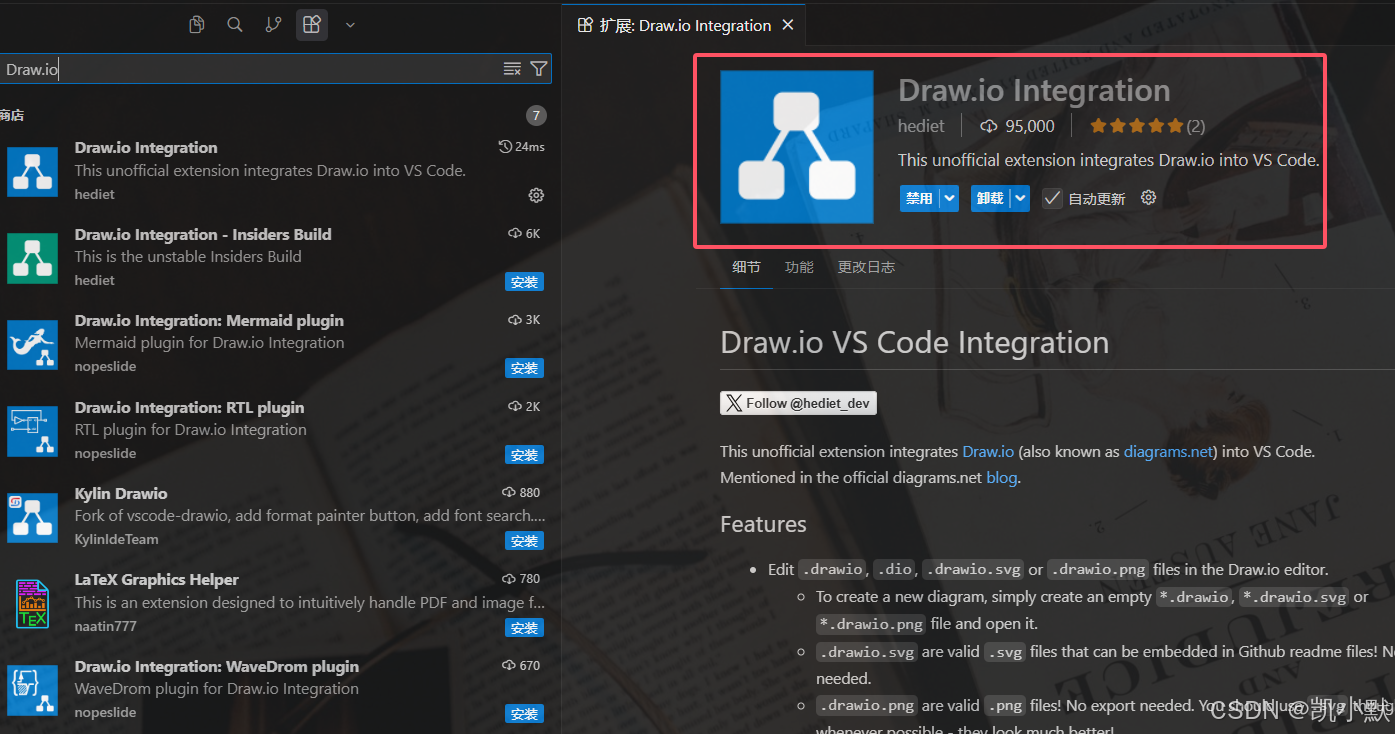 我们需要 vscode 或者 cursor 编辑器的拓展工具里面去找到这个插件 Draw.io Integration