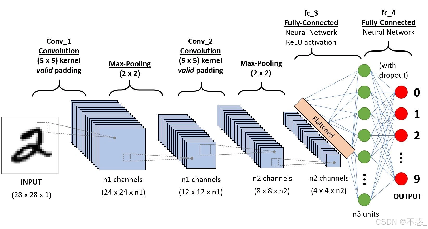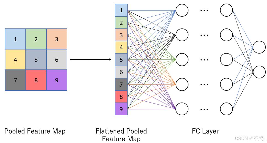 上图是一个全连接层示例:输入扁平化后,全连接到输出神经元。