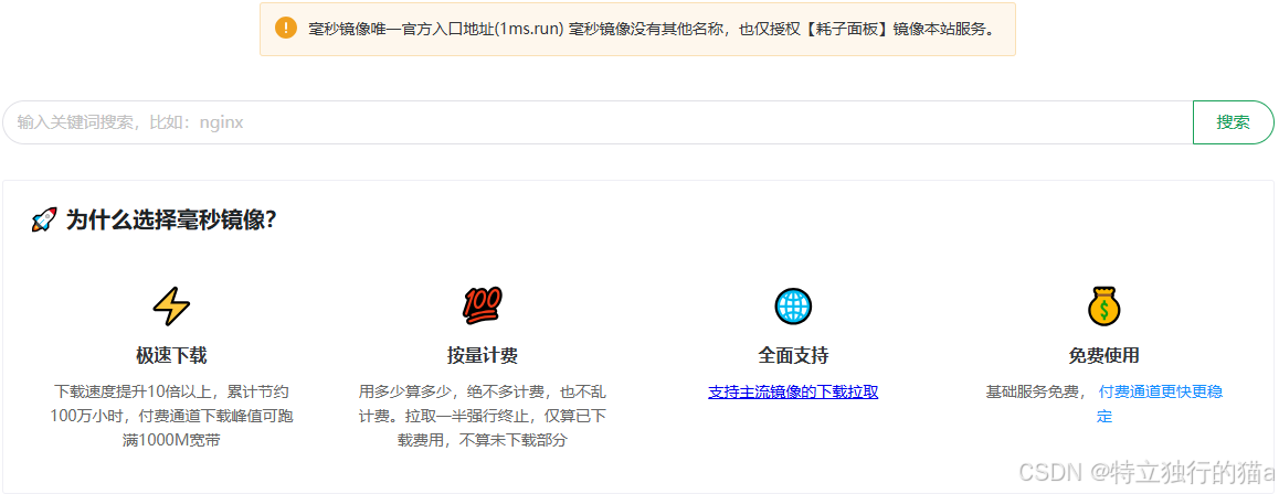 毫秒镜像: 👉 https://docker.1ms.run | 官网首页