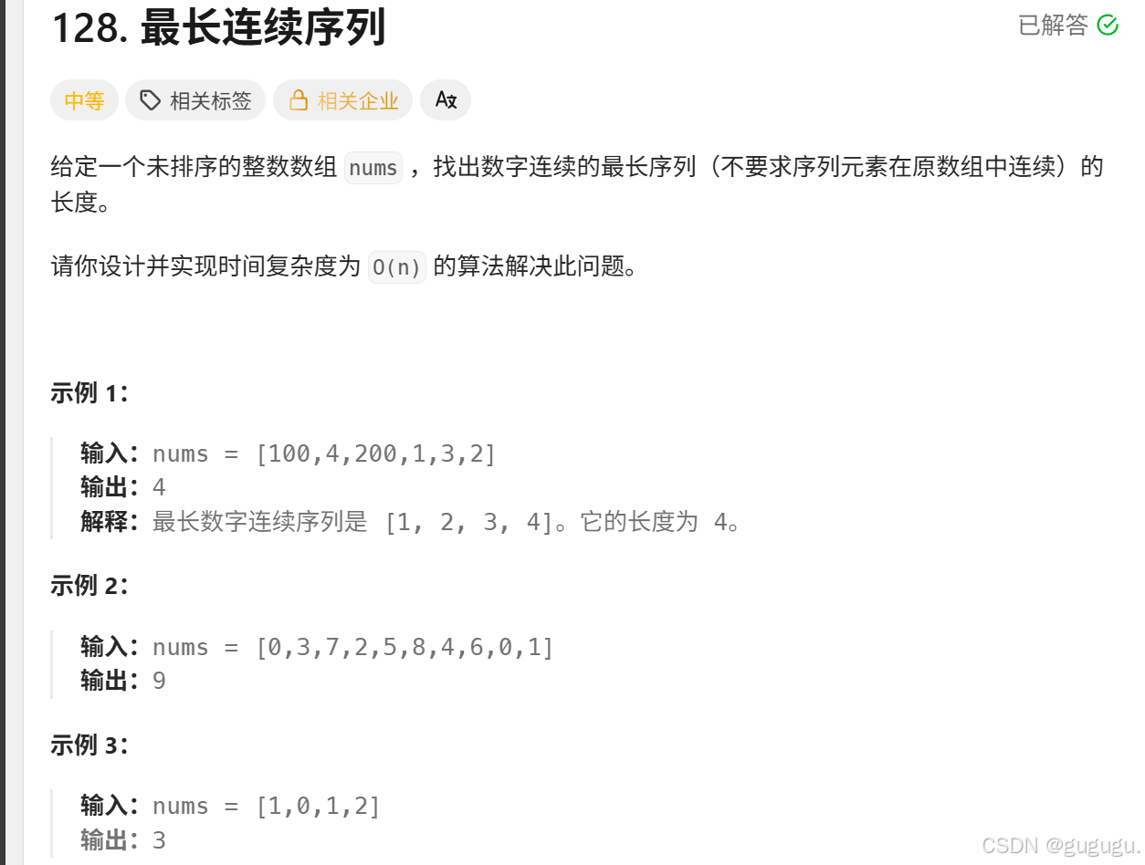 题目:128. 最长连续序列