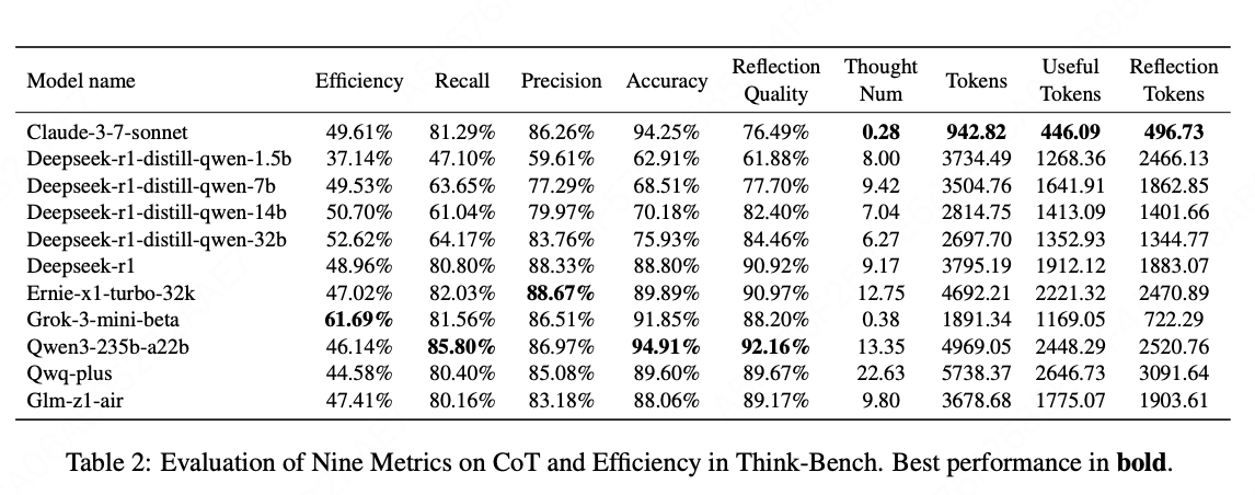 本文为系统研究这一问题引入 Think-Bench,这是一个旨在评估 LRMs 推理效率的基准。
