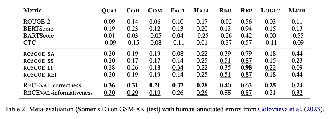 总之,元评估框架为我们提供了一个从更高层次审视和改进推理评估指标的视角。通过合理运用 Somers' D 等工具,我们可以更好地理解不同评估指标的优势与不足,从而推动推理评估领域的发展,使其更加科学、准确和高效。