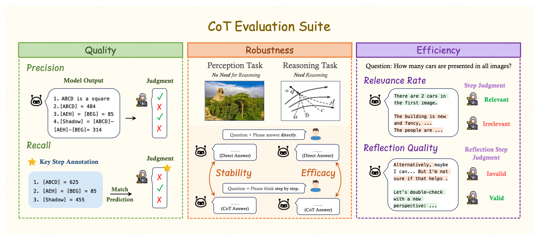 - 效率与质量的平衡:MME-CoT和THINK-Bench 的提出反映了对推理效率的关注,未来评估方法可能会更加注重在效率和质量之间找到平衡。