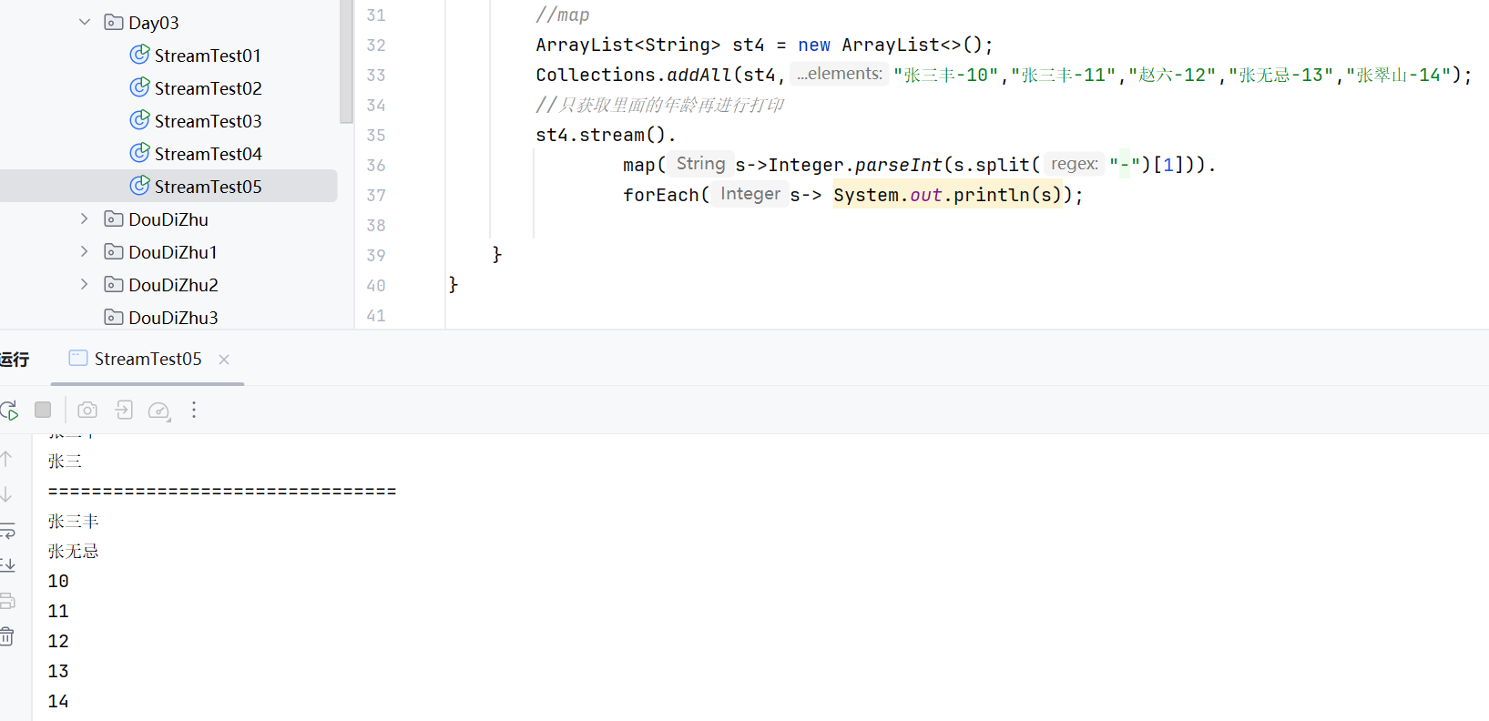 Collections.addAll(st1,"张三丰-男-16","张四丰-男-17","赵六-女-18","张无忌-男-17","张翠山-男-19","张大炮-女-20");