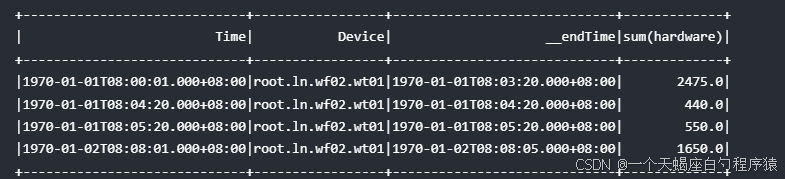 |1970-01-01T08:00:01.000+08:00|1970-01-01T08:08:00.000+08:00| 15| 18| 15|