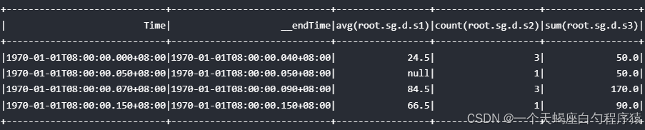 每个时间间隔窗口内都有数据,SQL 执行后的结果如下: